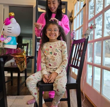 I hired Mae for my daughter's birthday party, and we couldn't be happier! The hair tinsel installation was a huge hit with all the kids, and they loved the colorful feathers too. The sparkly facial glitter with rhinestones added the perfect touch to the festivities. Mae and the girls were so professional, friendly, and worked seamlessly with our schedule. I highly recommend their services for any party or special event!