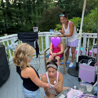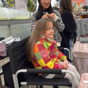 Not only do we make your hair sparkle, but we offer facial glitter, sparkle tattoos, colored hair braids with added charms for every occasion !