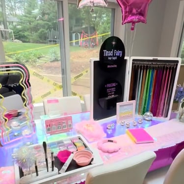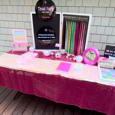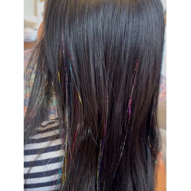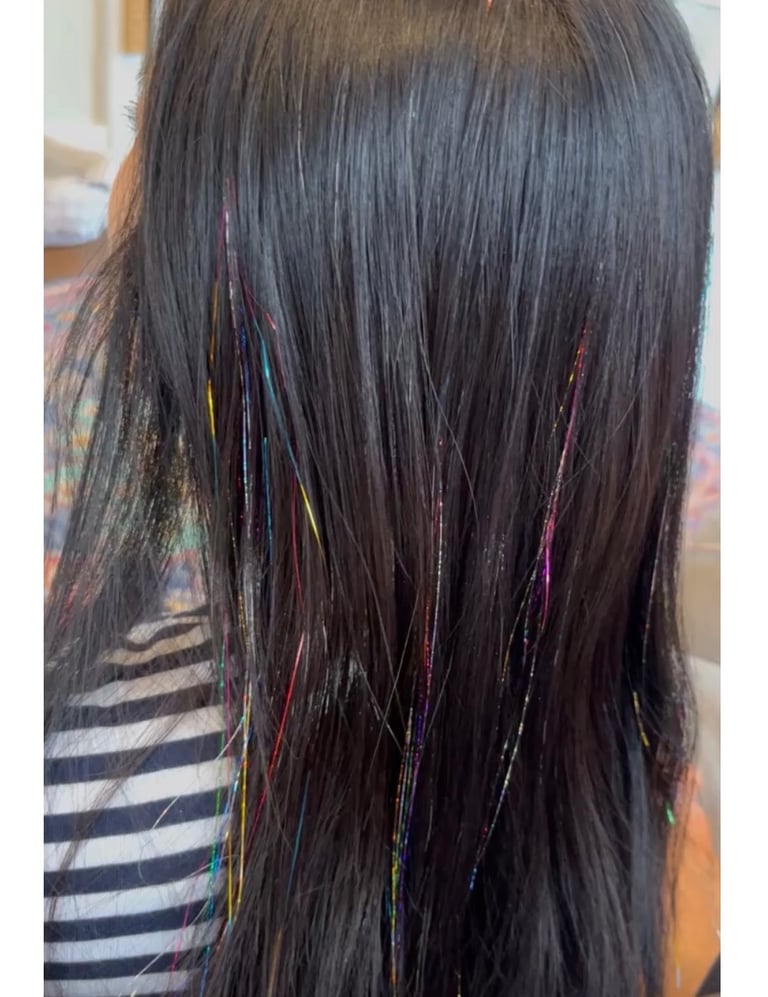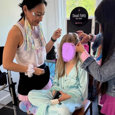 Join us at The Tinsel Fairy, where your hair dreams come true! Please fill out form below to inquire about a party or an individual tinsel application .