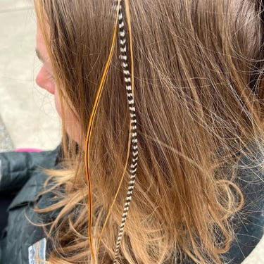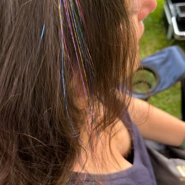 At The Tinsel Fairy, we believe that everyone deserves a little sparkle in their life. Specializing in the art of hair tinsel application, colored hair extensions, feathers and more, we’re here to transform your hair into a dazzling masterpiece.